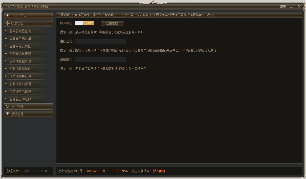 内容概述 : L2JSE商业版不需要额外购买控制平台直接赠送为永久版 , 请联系唯一QQ号码 5679641 购买控制平台费用使用会员时间制收费 .